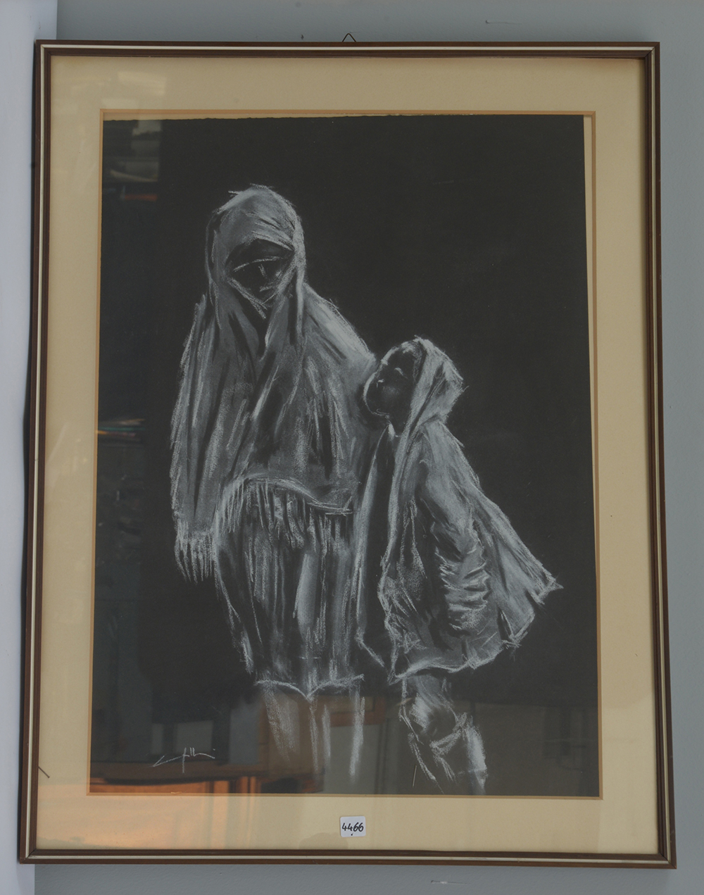 Firma indecifrata, "Figure" biacca su carta nera (cm 65x48) in cornice (lievi...