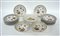 Parte di servizio da frutta in ceramica con tese traforate e decori floreali composto da diciassette piattini e due porta frutta, cui si unisce un piatto di fattura differente (difetti)