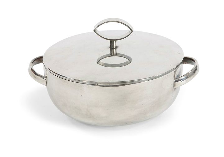 SABATTINI LINO Zuppiera in metallo argentato con presa ogivale e manici...