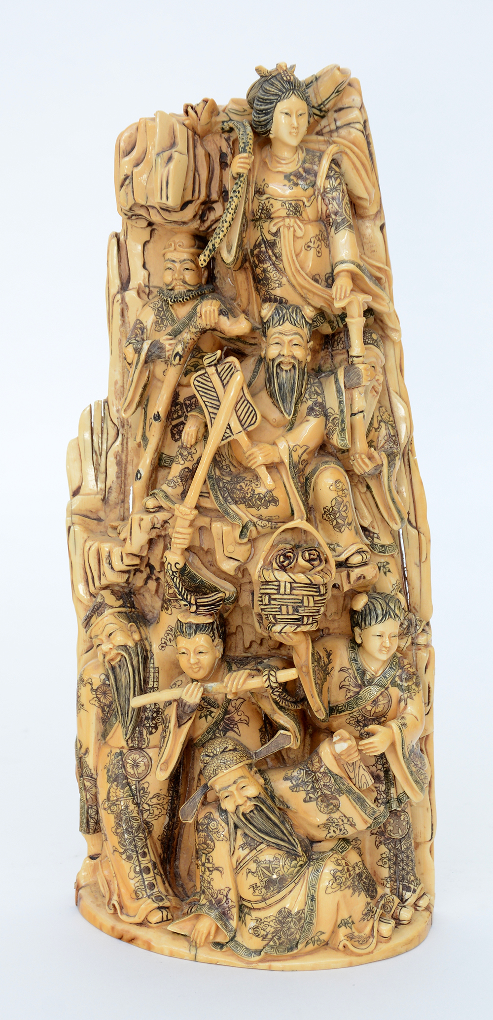 Scultura in avorio raffiguranti immortali taoisti e servitori, firmato...
