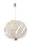 Lampada a sospensione con lamelle in materiale plastico bianco.