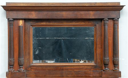 Caminiera Impero in mogano decorata con mezze colonne laterali scanalate....