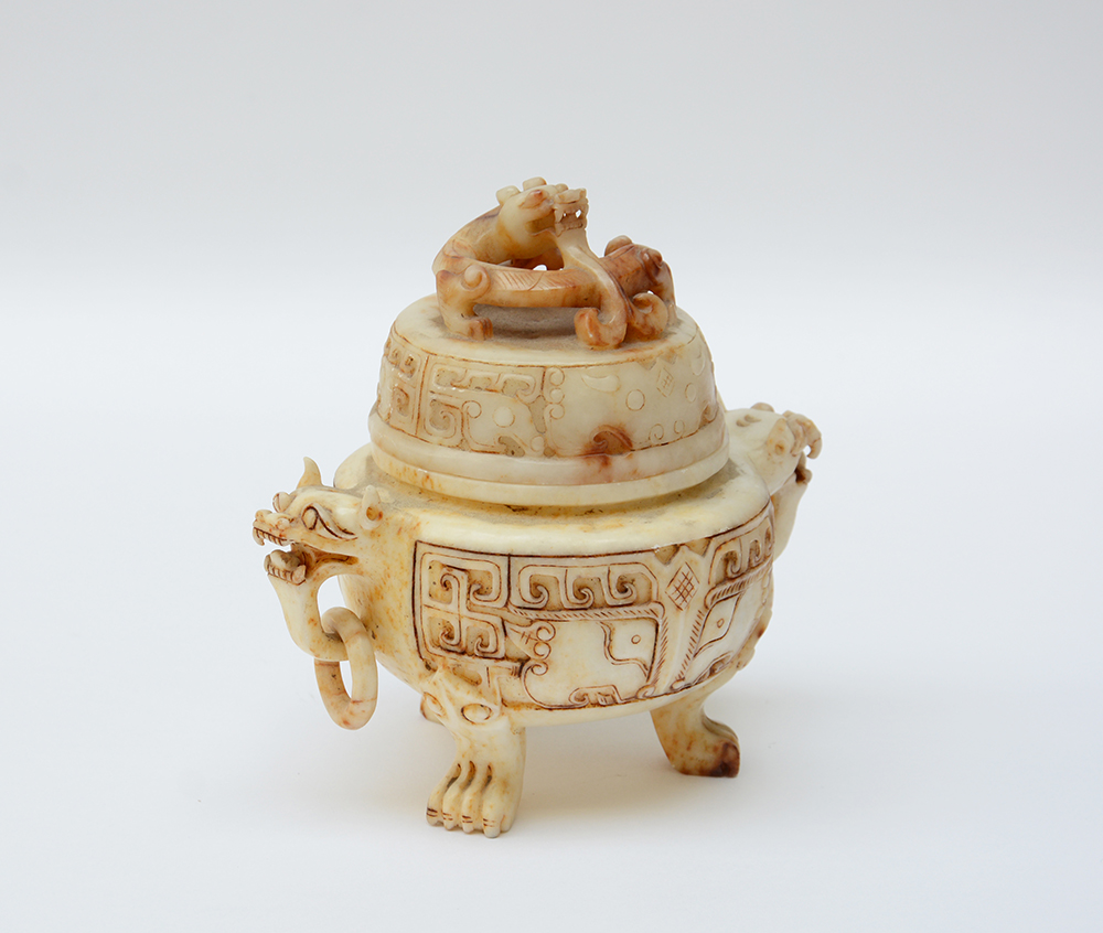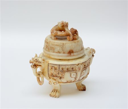 Incensiere tripode in pietra dura con coperchio (lievi difetti)(h. 22 cm.) -EN .