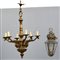 Lotto composto da un lampadario in bronzo a sei luci e una lanterna esagonale (difetti)