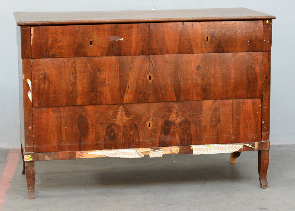 Antico comò in noce a due cassetti in linea sottopiano e due grandi sul...