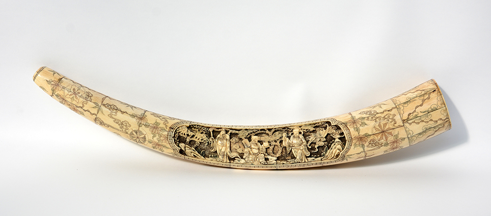Scultura raffigurante zanna lastronata in osso (difetti) Cina, sec. XX (h. 60 cm.) -EN .