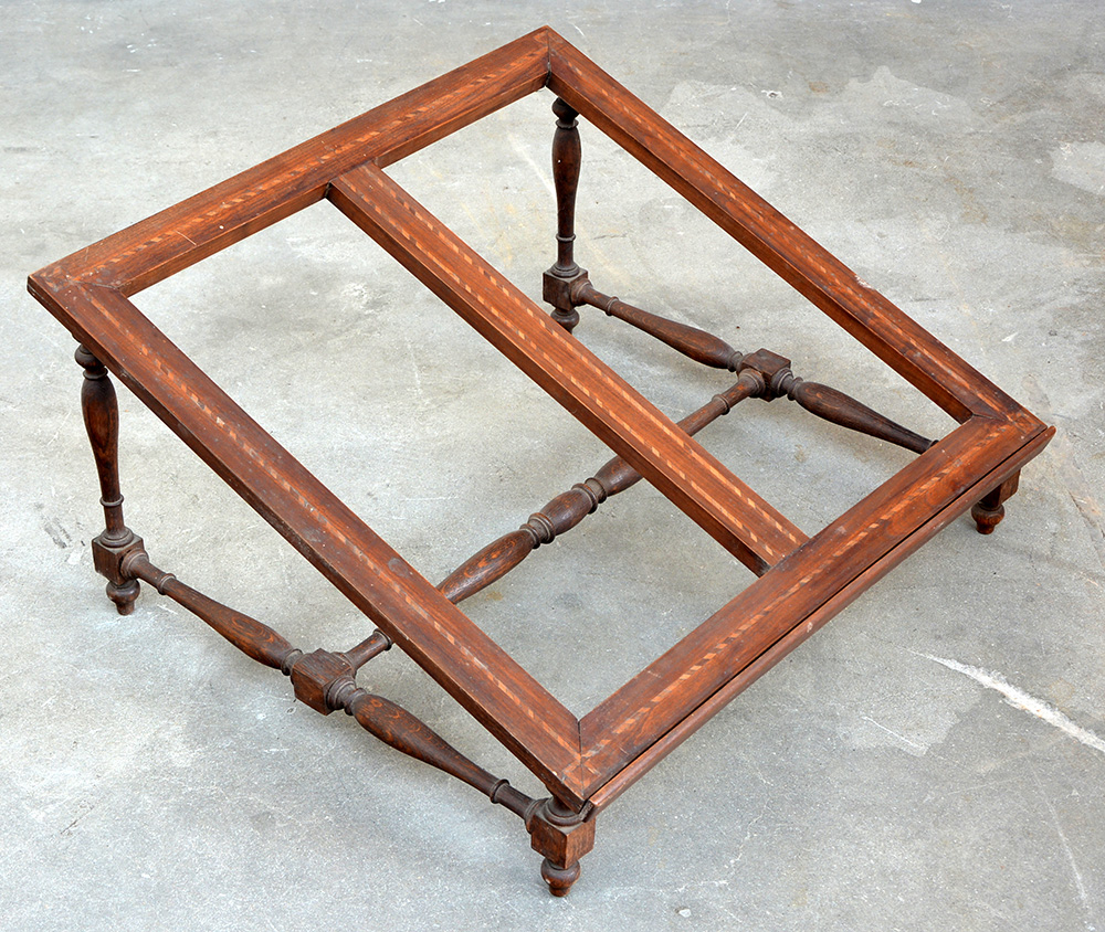 Grande leggio da tavolo con sostegni torniti decorato con piccoli intarsi (cm 64x65x32) (difetti)