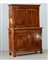 Credenza a due corpi in noce, parte superiore a due ante riquadrate, parte inferiore a due cassetti e due sportelli. Piedi a pilastro, sec. XIX (cm 131x193x49)