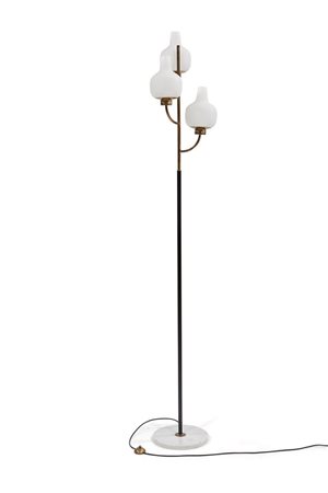 STILNOVO Lampada a piantana a tre luci in metallo laccato nero e ottone...