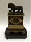 L. LACROIX A TURIN Pendola da tavolo in bronzo brunito e dorato cesellato a palmette e motivi vegetali. Quadrante firmato, in metallo argentato a numeri romani, sormontato da figura di leone a tutto tondo, base in legno ebanizzato. Movimento con carica settimanale, sospensione a filo(h cm 44)(difetti, manca la chiave di carica)
