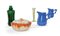 Guido Andloviz, una bottiglia, un vaso a collo stretto ed una scatola con coperchio, marchiate Lavenia Made in Italy e simbolo grafico.