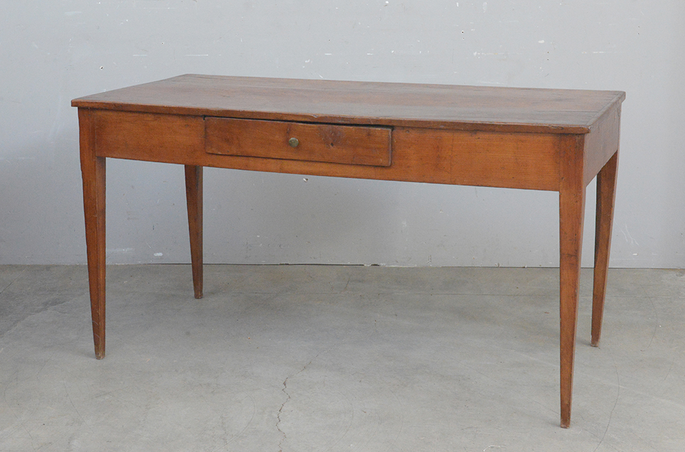 Tavolo da centro in legno con un cassetto nella fascia e quattro gambe rastremate (cm 144x77x68) Fine sec. XVIII (difetti)