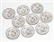 Nove piatti circolari in Famiglia Rosa con bordo blu (difetti e restauri)...