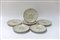 Gruppo di sei piatti per ostriche in porcellana con profili dorati (lievi...