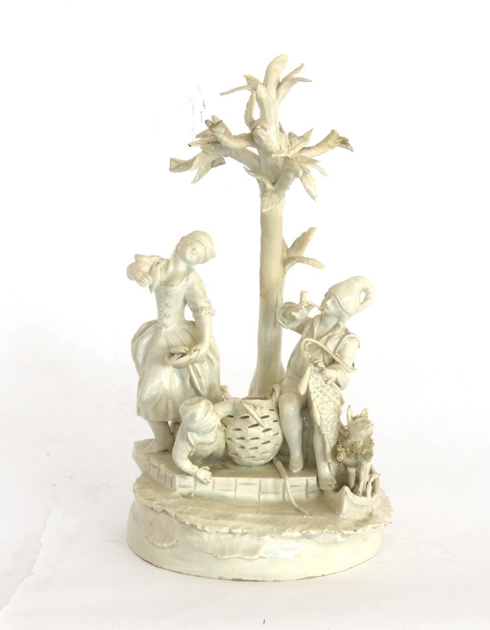 Gruppo plastico in ceramica bianca raffigurante una scena con pescatori (h cm 28) (difetti, mancanze e restauri)