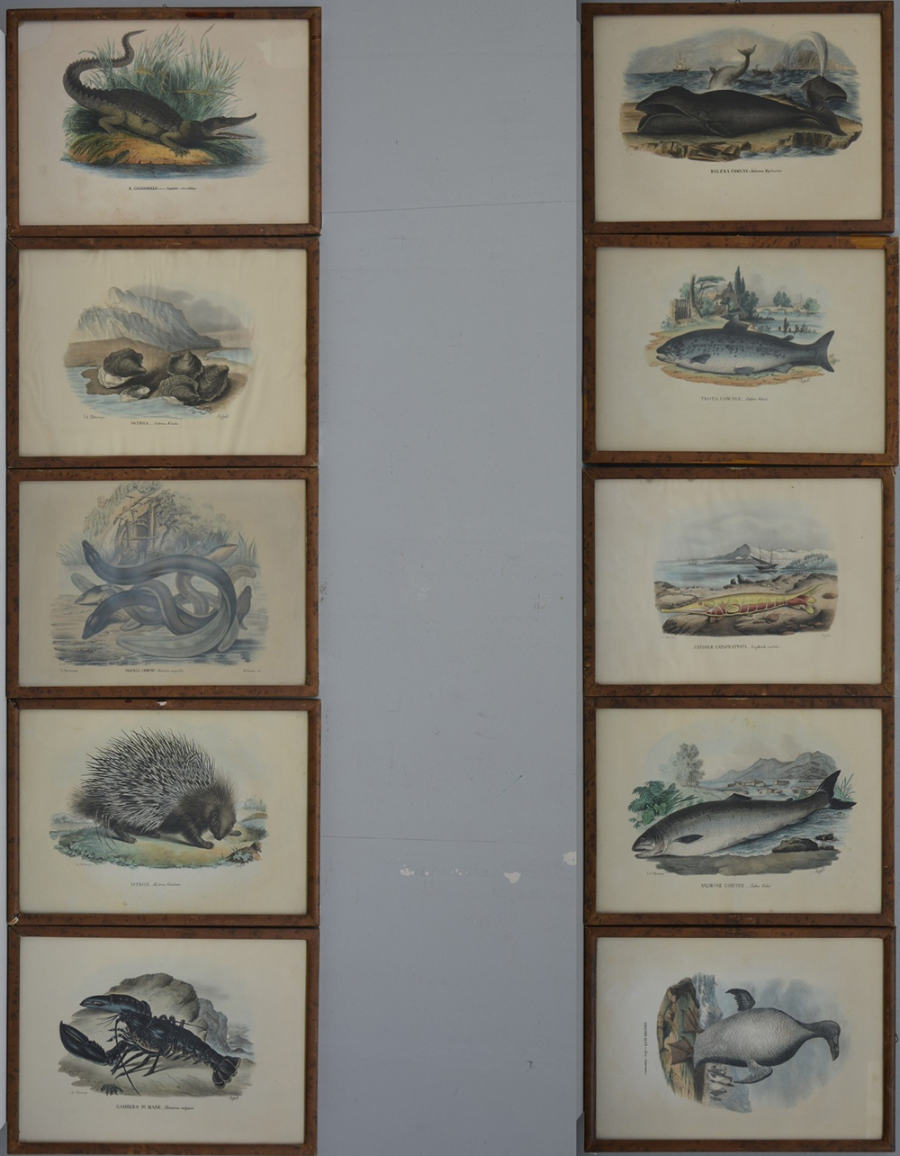 Gruppo di dieci stampe a colori raffiguranti animali, in cornici (difetti)