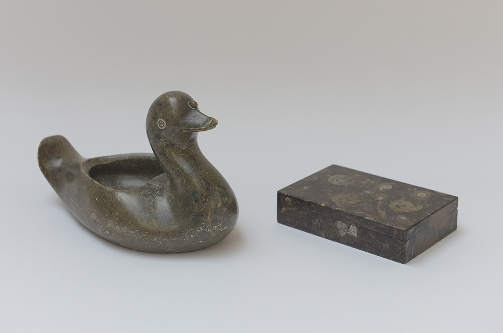 Lotto composto da una scatola e un’anatra in pietra dura (difetti)