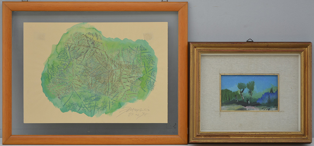 Lotto composto da una tecnica mista su carta di Gaetano Fracassio e un piccolo acrilico su cartone telato di Giorgio Pagi, misure differenti, in cornici