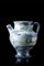 Versatoio in maiolica blu su smalto berettino a edifici e paesaggi. Scritta farmaceutica "Oll Amigdal Amar" in cartiglio con terminali a ricciolo. Savona, secolo XVIII (h. cm 20) (restauri e rotture) -EN A majolica ewer. Savona, 18th century (h. cm 20) (restorations and losses)