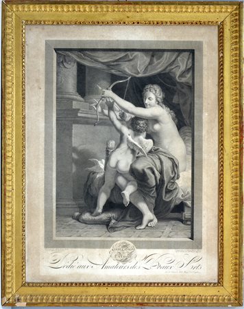 Incisione francese del secolo XIX, ''L'education de l'amour'' (cm 61x46) in...