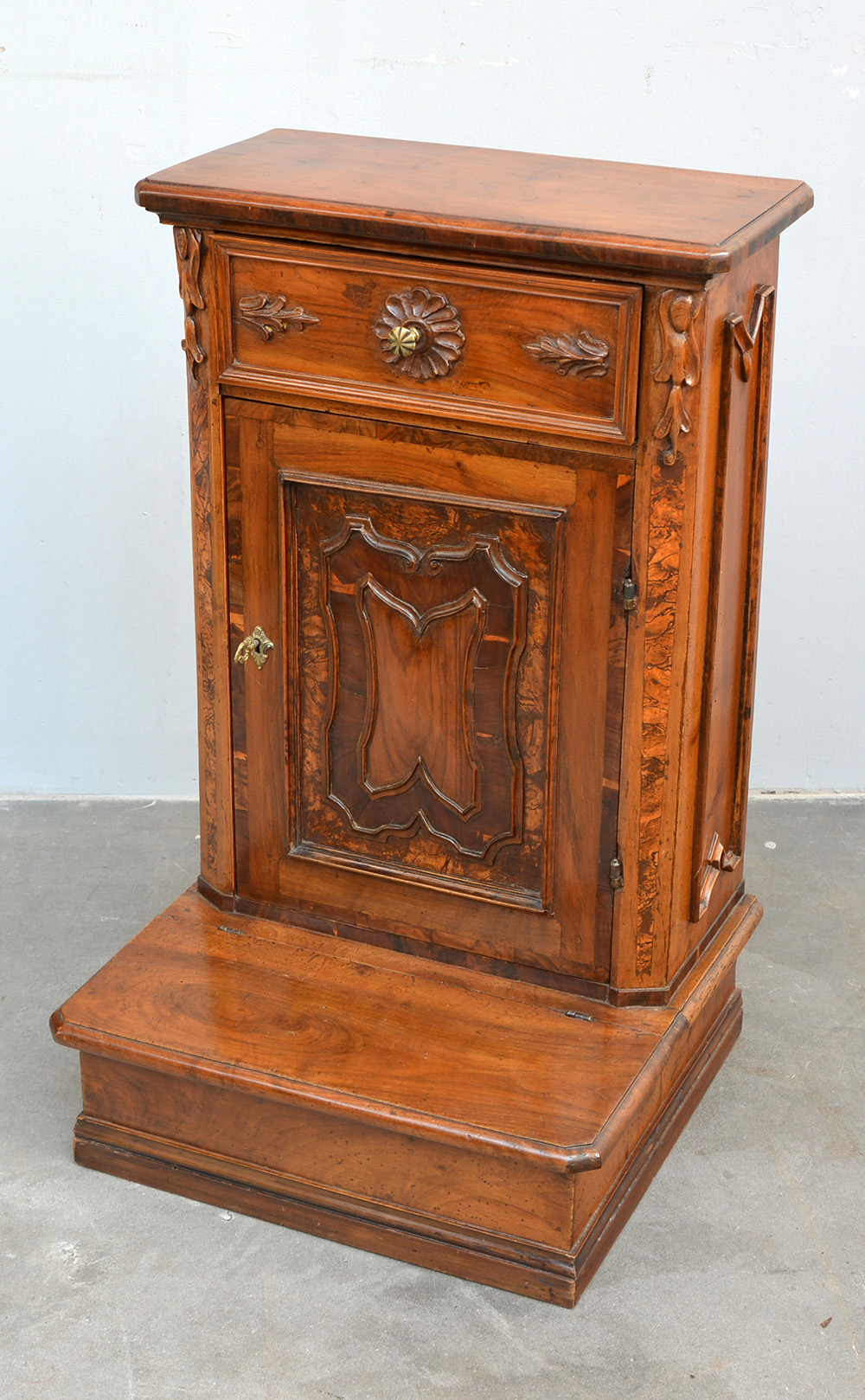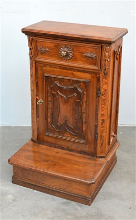 Inginocchiatoio in noce intagliato con cassetto nella fascia, antina e...