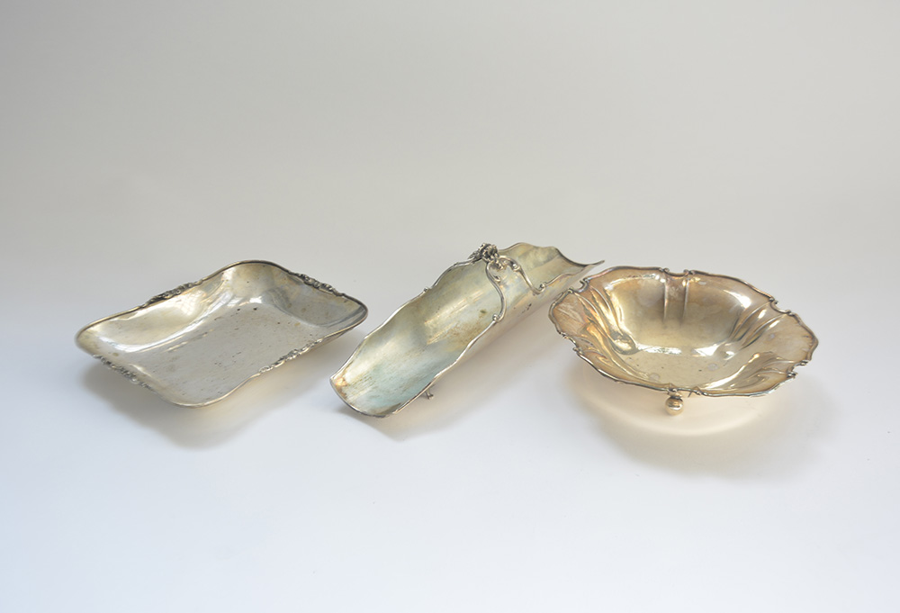 Lotto composto da un porta grissini e due alzatine in argento con bordo cesellato (gr 650 ca.)