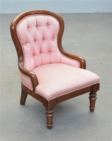 Modello di poltrona Luigi Filippo in mogano rivestita in tessuto rosa (difetti)