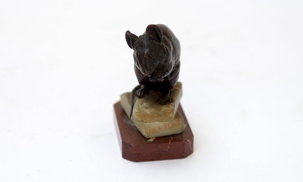 Charles Valton (1851-1918) "Topo" scultura in bronzo su base in alabastro e marmo (h. cm 11)