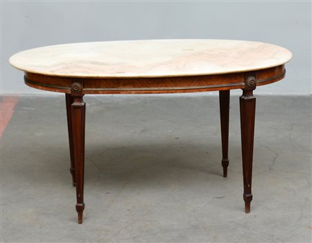 Tavolino da salotto con gambe rastremate e piano ovale in onice (cm 90x48x50) (difetti)