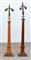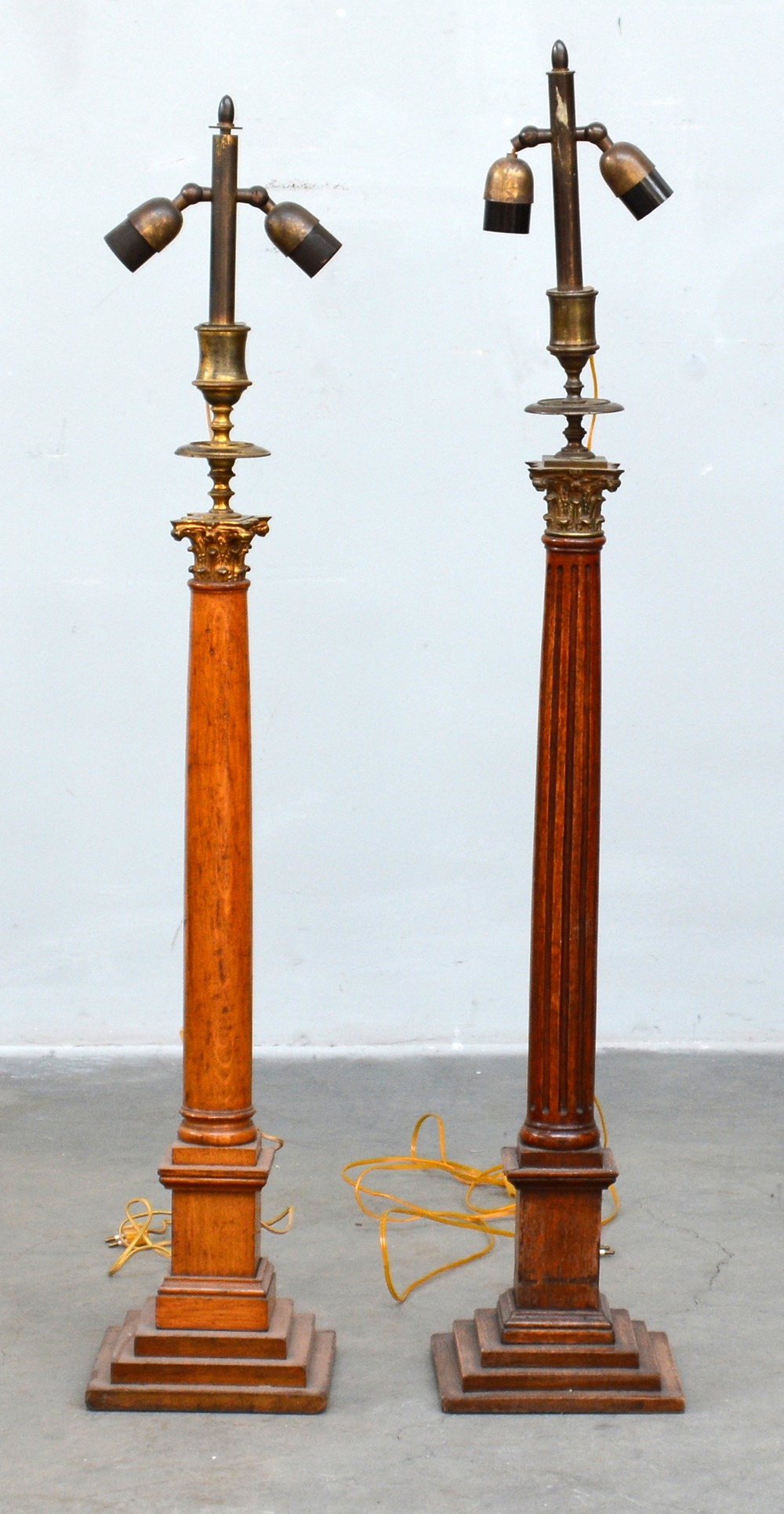 Coppia di abat jour in rovere con colonna scanalata e capitello dorato (h. cm 80)