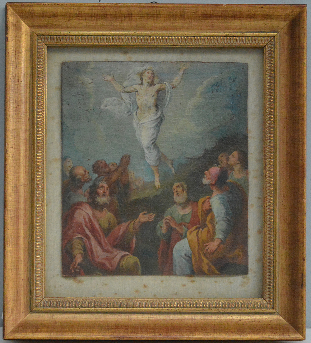 Ignoto del secolo XVIII "Cristo risorto" frammento ad olio su tela (cm 29x25), in cornice (difetti)