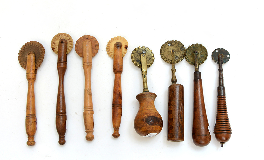 Lotto composto da otto rondelle da pasta in legno e materiali diversi -EN Eight mixed pastry jiggers with wooden handles