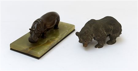 Autori diversi. Lotto composto da una scultura in bronzo raffigurante ippopotamo e uno raffigurante orso