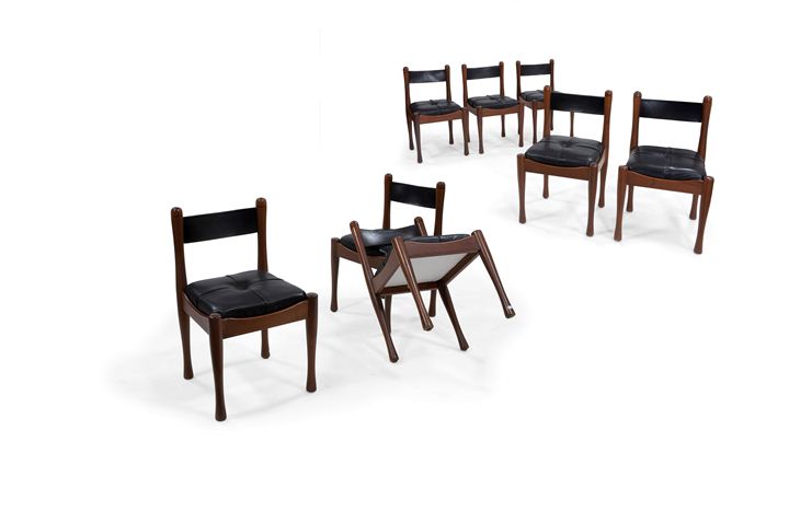 COPPOLA SILVIO 620 Otto sedie in legno massello di noce con gambe tornite,...
