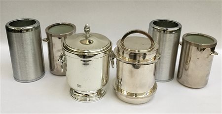 Lotto composto da due portaghiaccio e quattro rinfresca bottiglie in metallo...