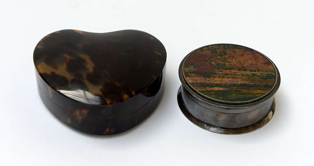 Lotto composto da una tabacchiera in argento e marmo ed una del secolo XIX in tartaruga a forma di cuore