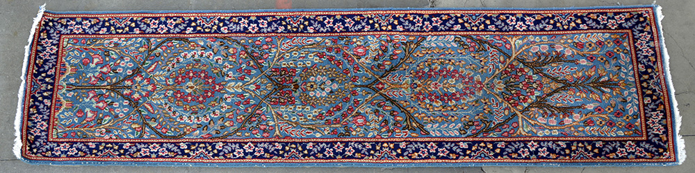 Tappeto passatoia Kashmir, India secolo XX Disegno floreale su fondo azzurro (cm 191x78) (difetti)