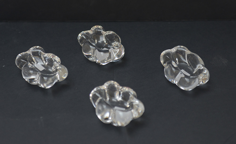 Daum Gruppo di quattro piccole portagioie di forma sagomata in cristallo. Francia, produzione recente. Firmati a punta sul bordo "Daum France". (l max cm 7) -EN Gruppo di quattro piccole portagioie di forma sagomata in cristallo. Francia, produzione recente. Firmati a punta sul bordo "Daum France". (l max cm 7)