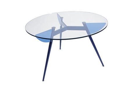 TAVOLO Tavolo rotondo con intelaiatura in metallo laccato blu, piano in...