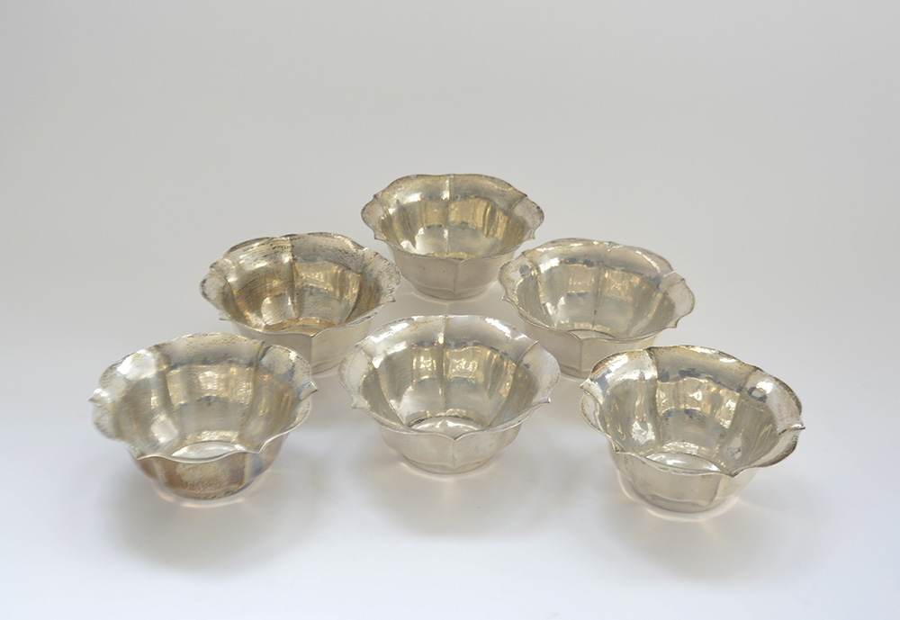 Gruppo di sei lavadita in argento martellato. Argentiere Missiaglia (gr. 750)