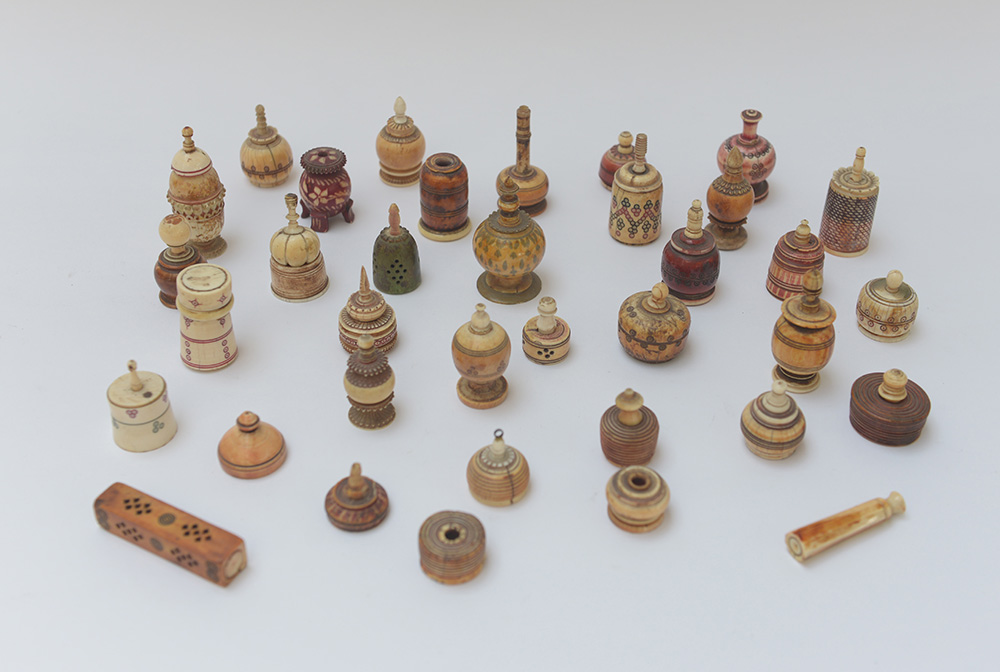 Manifattura indiana. Lotto composto da numerose elementi decorativi in osso...