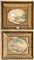 Scuola inglese, secolo XIX "Scena di caccia e paesaggio con contadini" coppia di acquerelli su carta (cm 17x20) In cornici coeve in legno e pastiglia dorata (difetti)