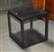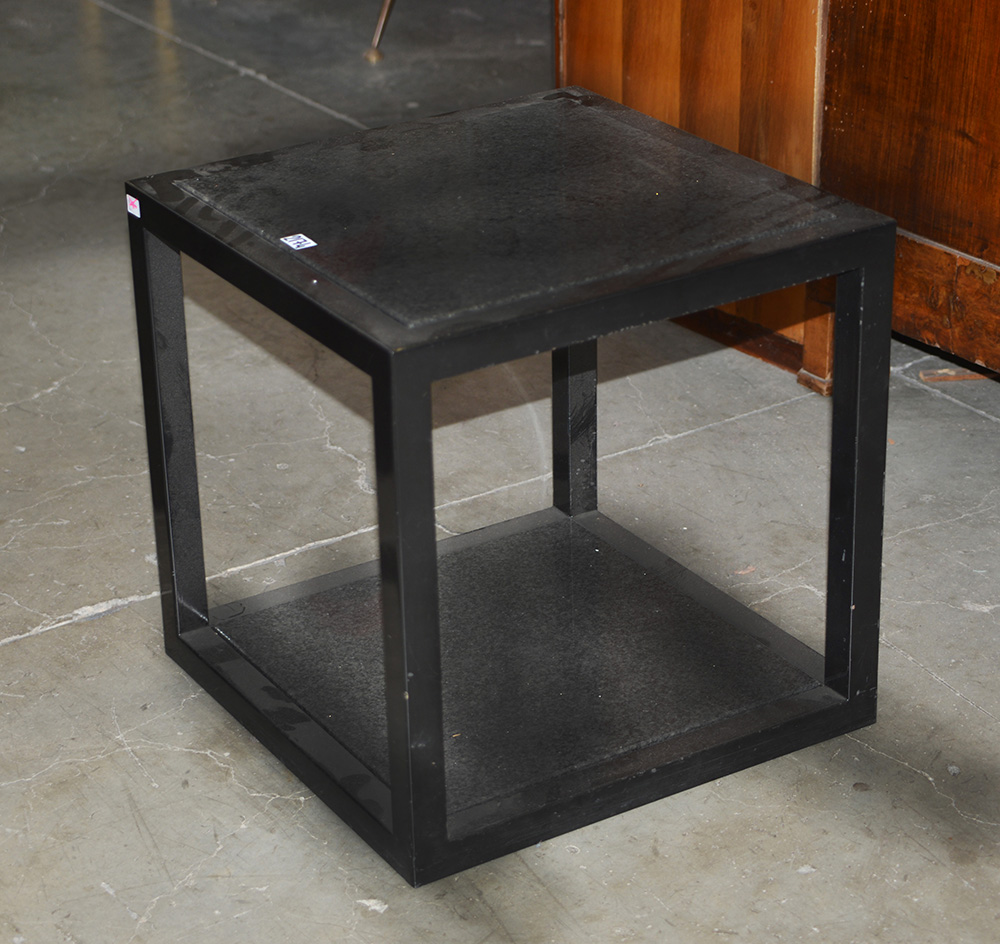 Tavolino di forma squadrata con struttura in metallo cromato e piano in granito nero. (cm 42x42x42) (lievi difetti) -EN Tavolino di forma squadrata con struttura in metallo cromato e piano in granito nero. (cm 42x42x42) (lievi difetti)