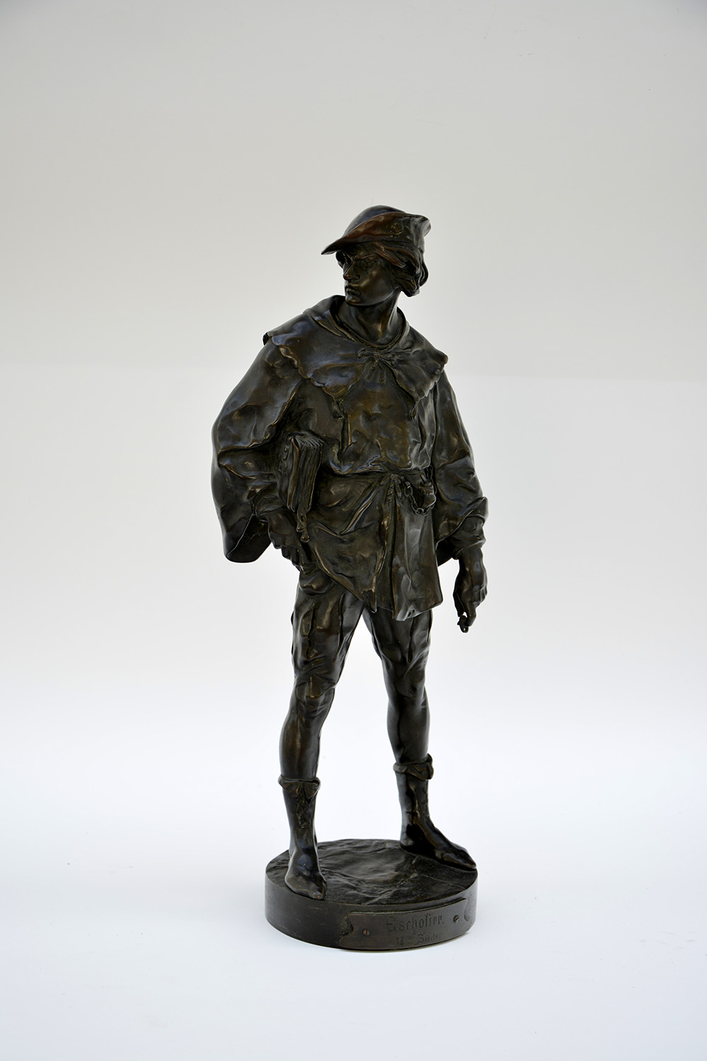 Emile Louis Picault (1833 - 1915) "Escolier/14me siecle" scultura in bronzo brunito (h cm 50)firmato sulla base (tiratura tarda) (difetti e mancanze)
