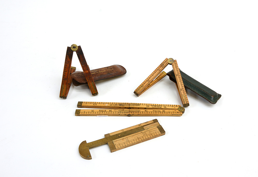 Lotto composto da quattro piccole misure pieghevoli in legno di cui due con custodia -EN Four wooden rulers