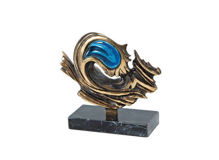 Scultura in bronzo parzialmente smaltata, base in marmo nero. Esemplare 7/100