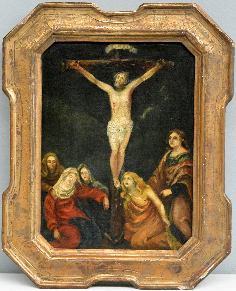 Ignoto "Crocifissione" olio su tela (cm 38x28) in cornice (difetti)