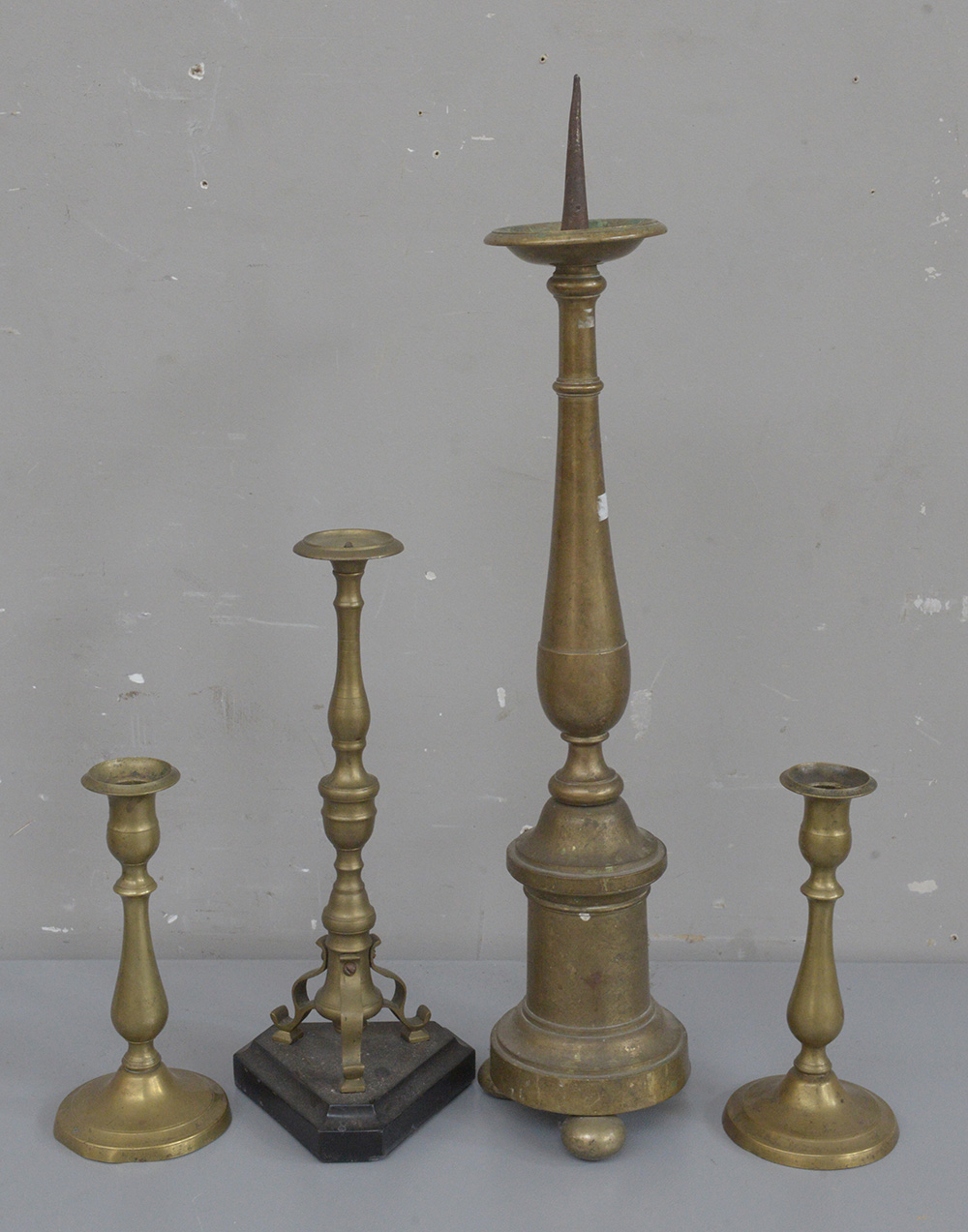 Lotto composto da quattro candelieri ad una fiamma in ottone