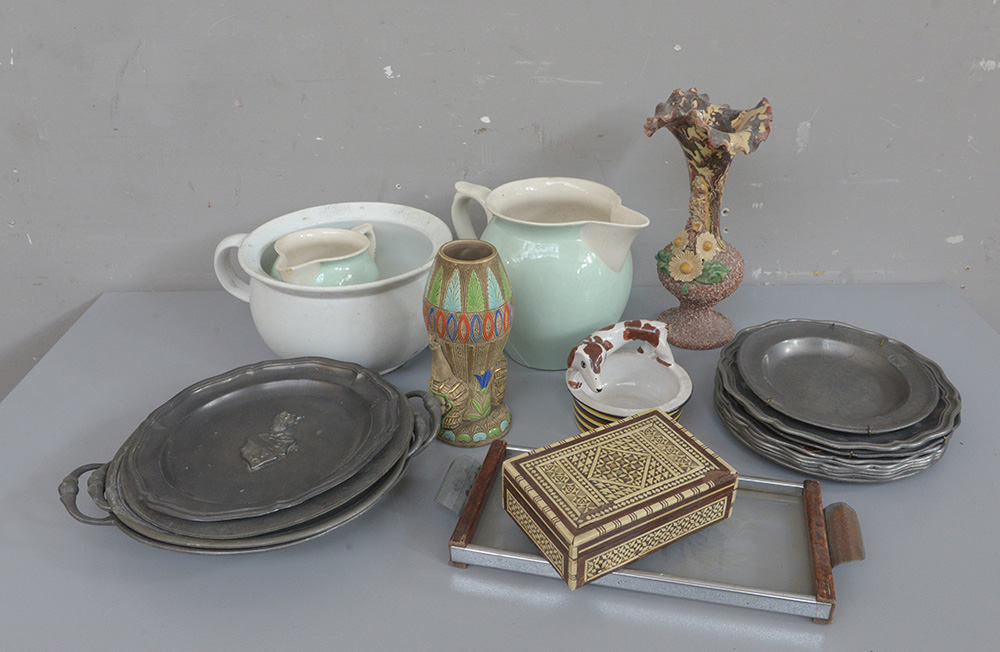 Cartone contenente numerosi oggetti di forme e fatture diverse (difetti)