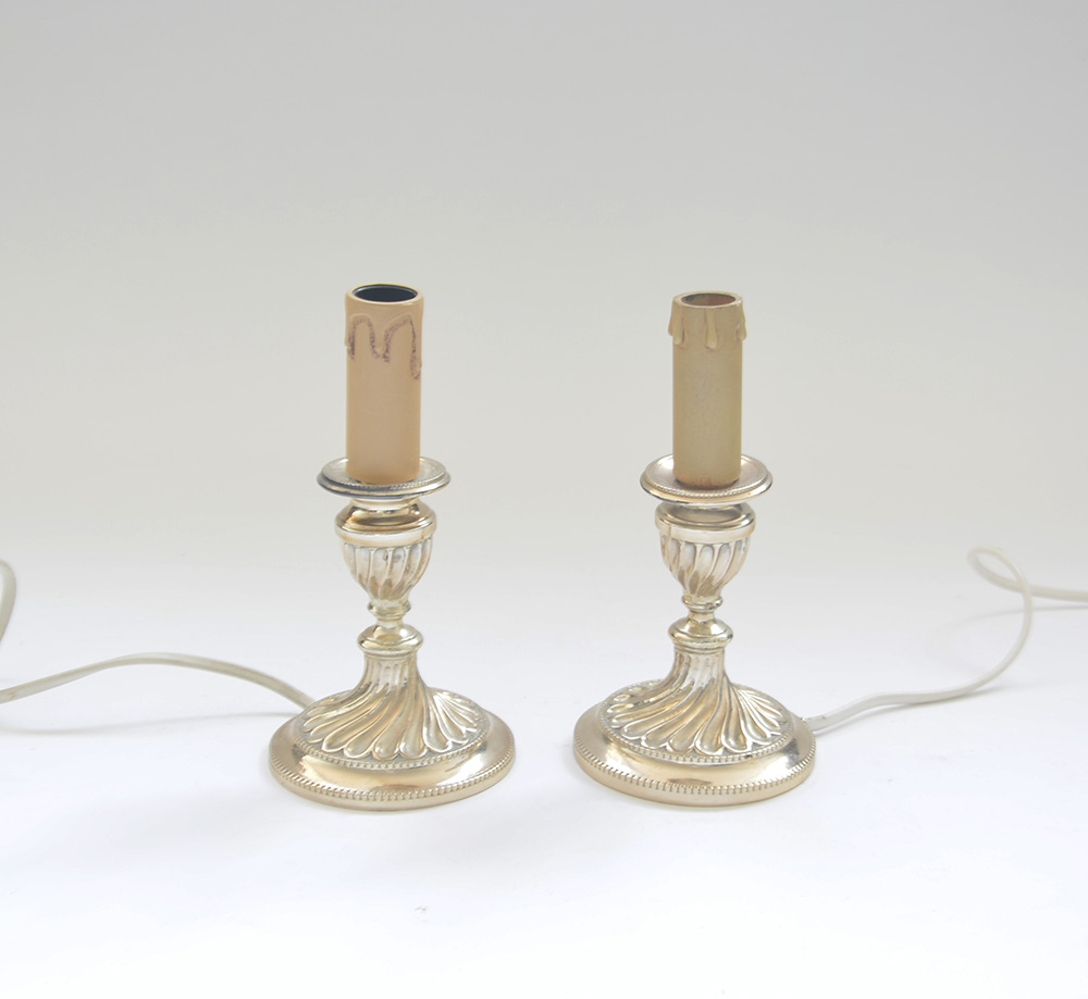 Coppia di piccoli candelieri in argento montati a luce elettrica (difetti)